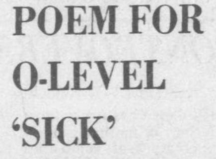 Griffiths contacted the Daily Telegraph, who obligingly ran with the headline “POEM FOR O-LEVEL ‘SICK’”, and — in a different kind of sic — identified the poet responsible as “Sean Heany”.